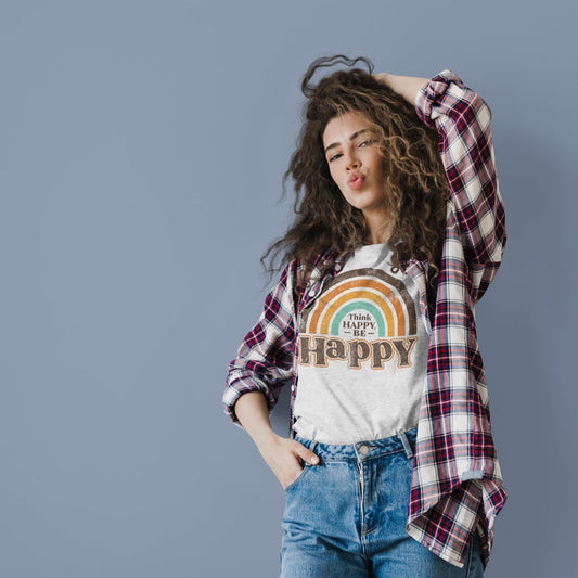 Think Happy, Be Happy Tee/ Retro Style Tee / Softstyle Shirt