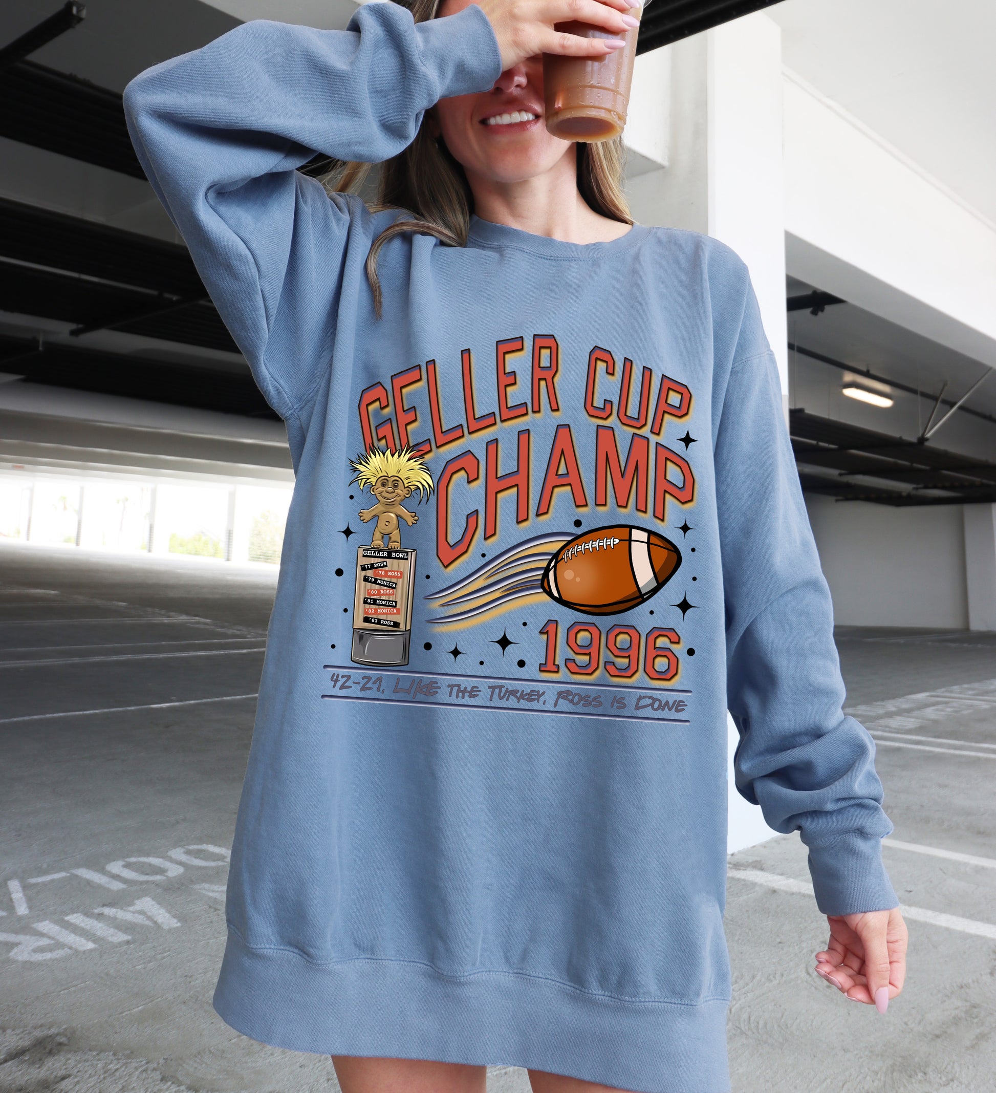 Blue Jean Comfort Colors Geller Cup Champ Sweathirt/ Ross Is Done/ Friends Thanksgiving Shirt