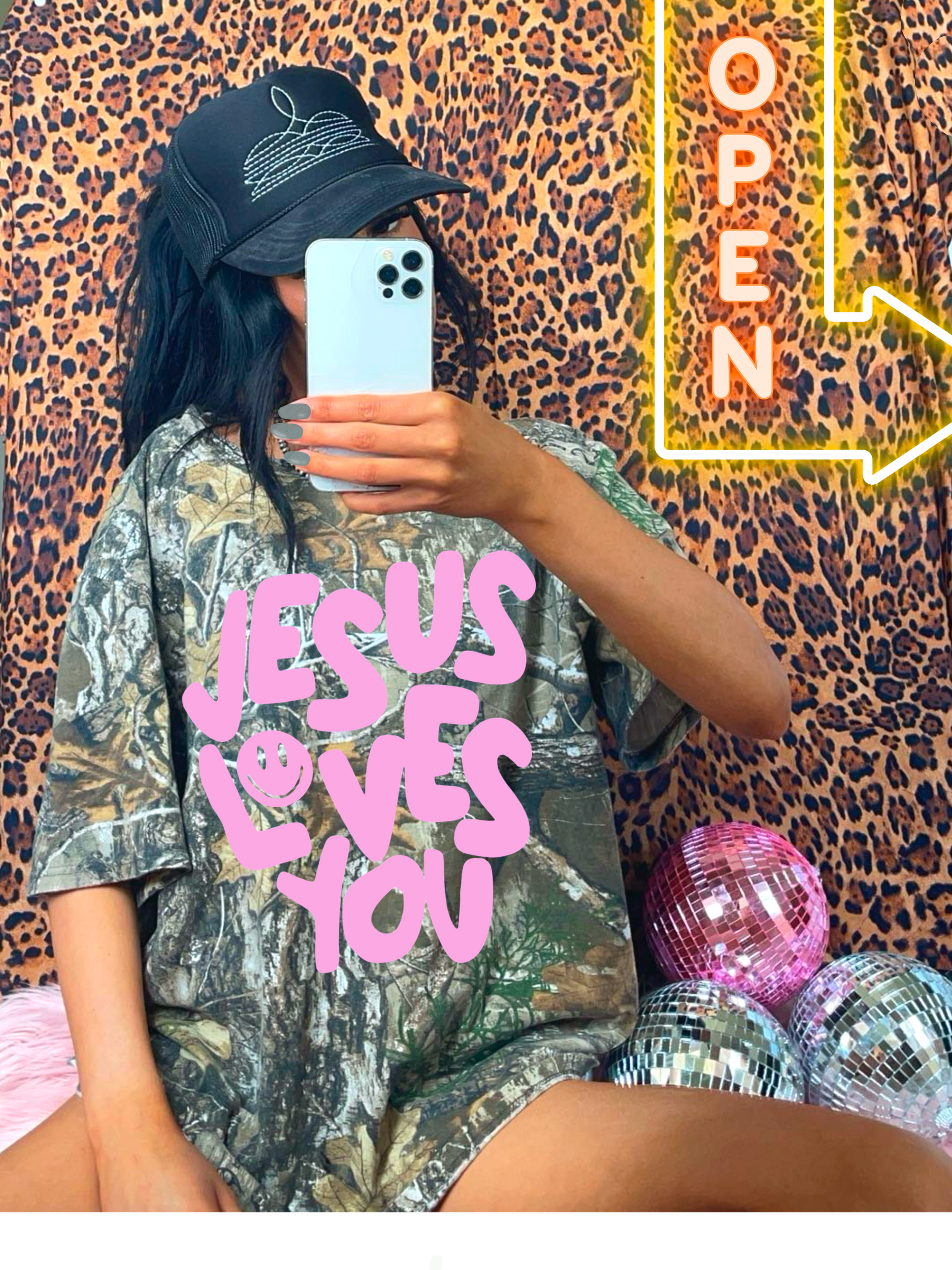 Camo Jesus Loves You Tee/ Youth and Adult Sizes