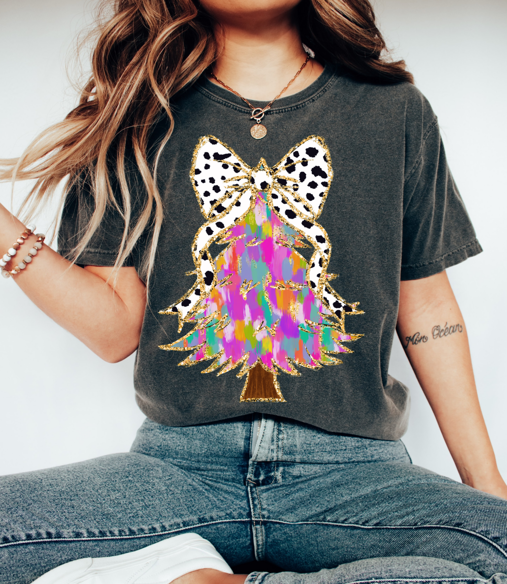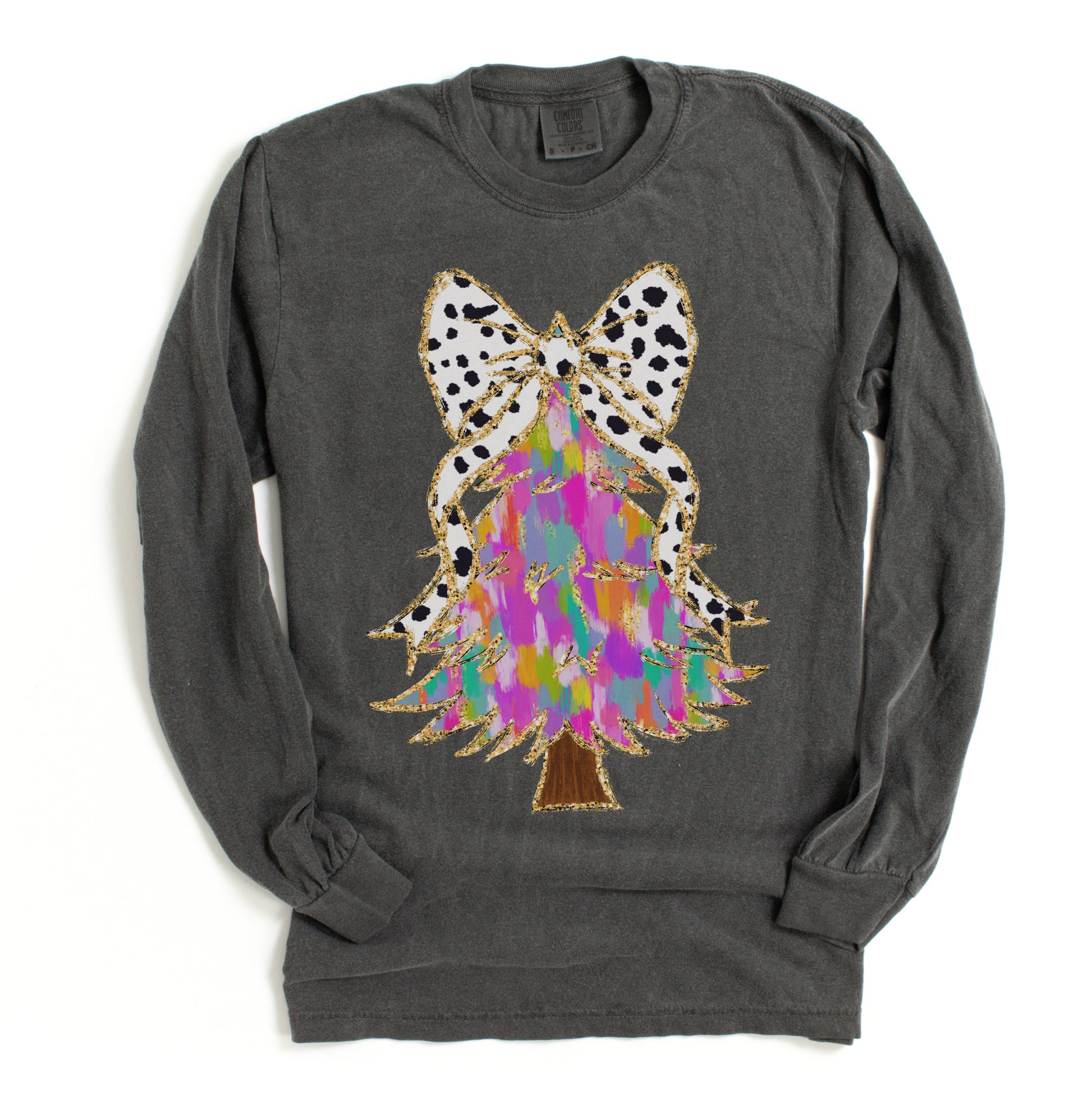 Comfort Colors Christmas Brush Strokes Tree Tee/ Long or Short Sleeve Options