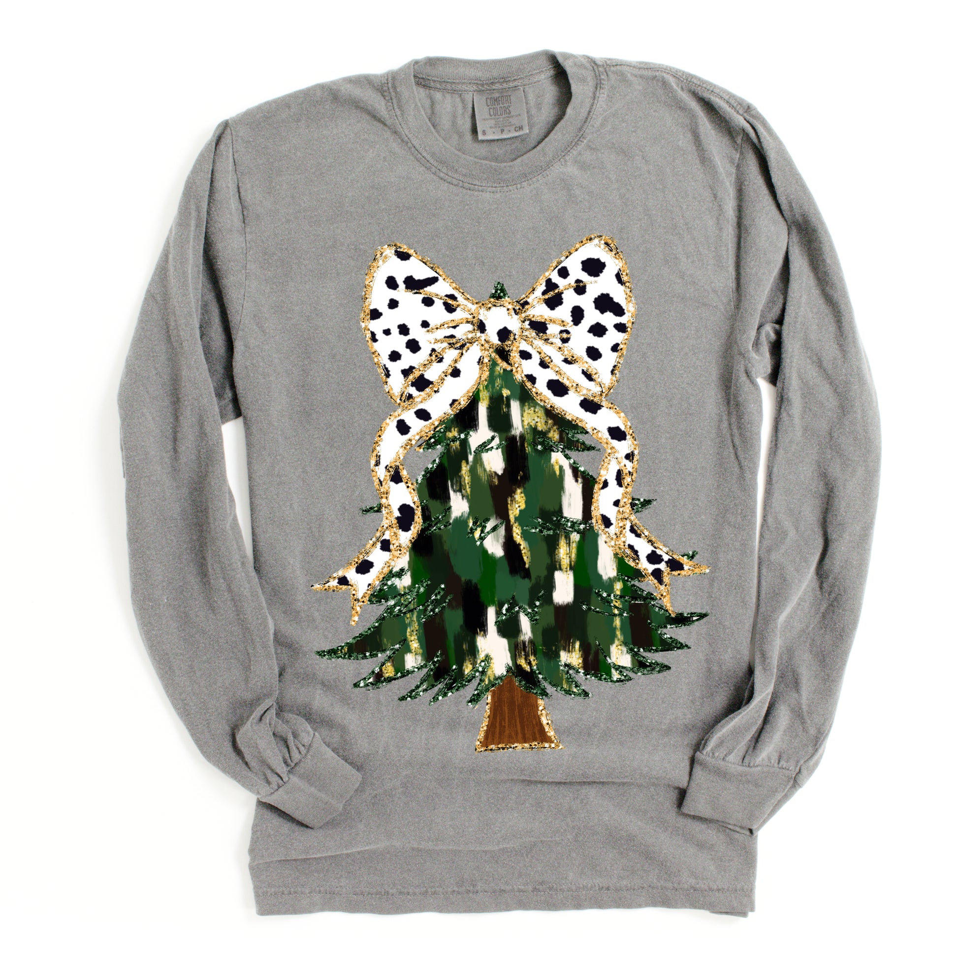 Comfort Colors Christmas Brush Strokes Tree Tee/ Long or Short Sleeve Options