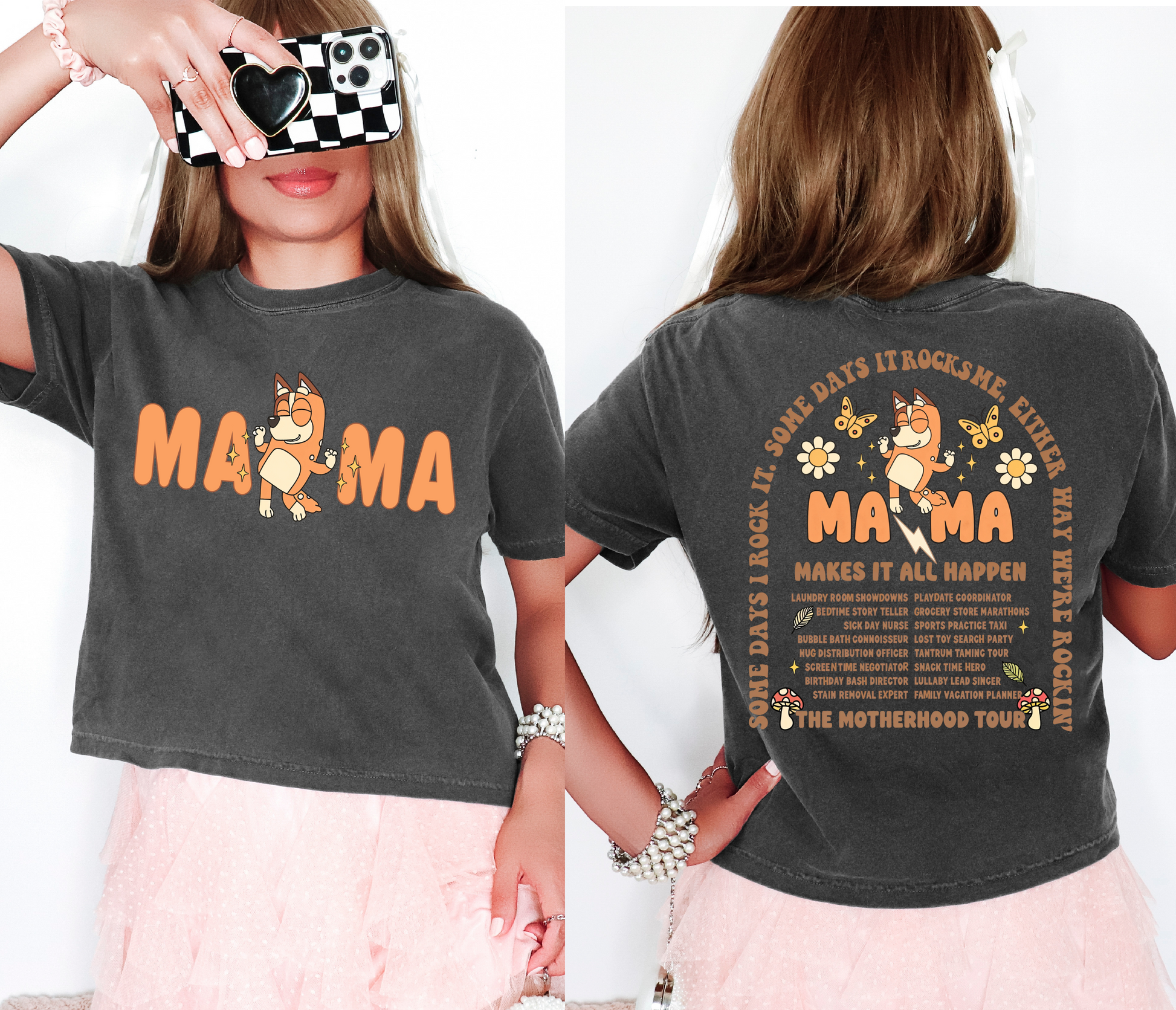 Comfort Colors Cropped Bluey Mom World Tour Tee