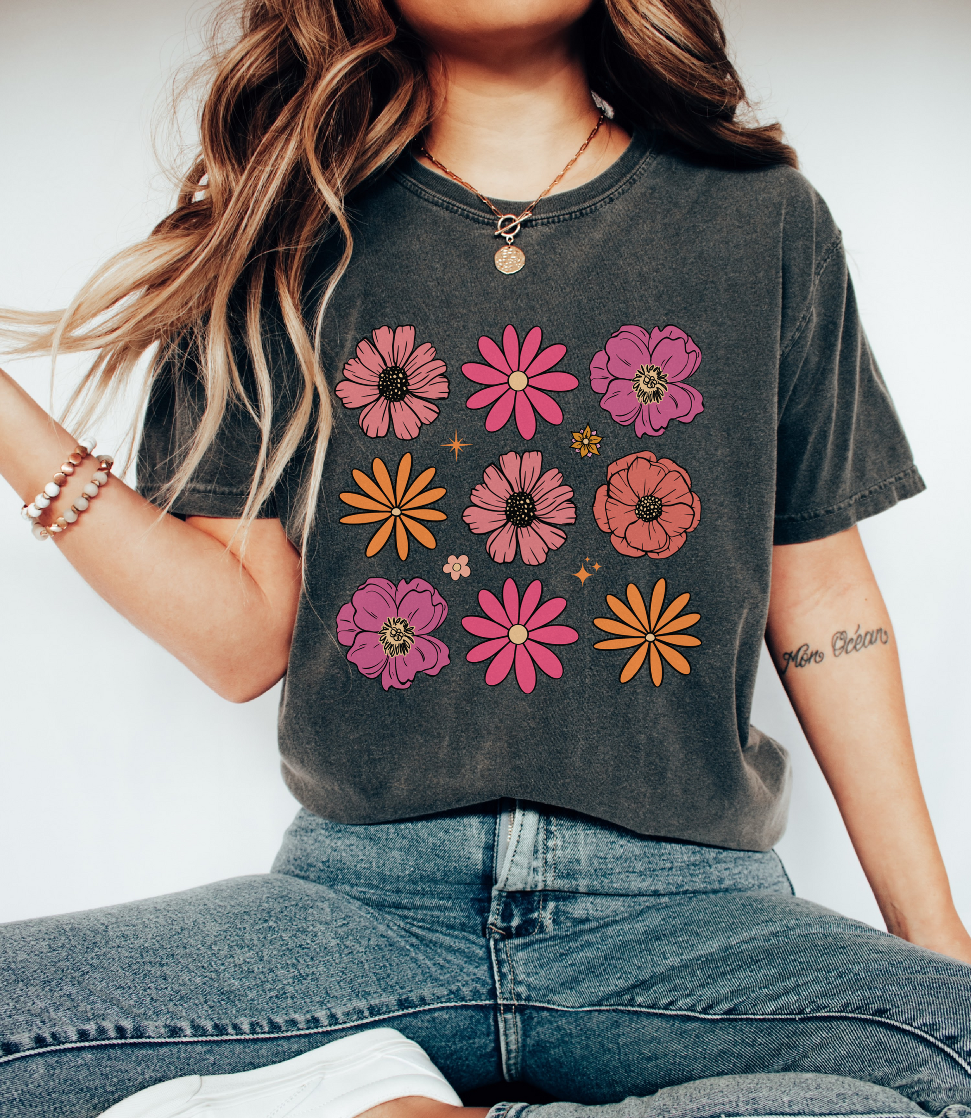 Comfort Colors Flowers Tee/ Quality Retro Tee