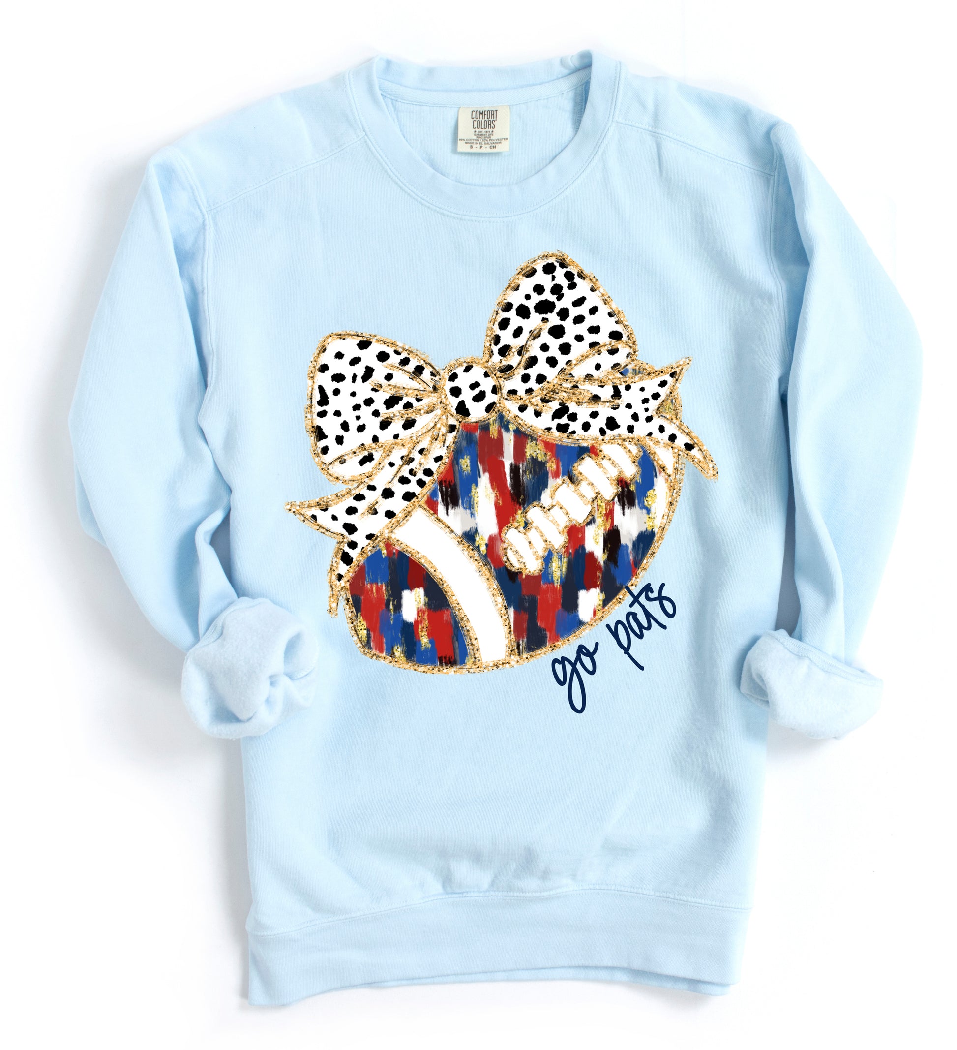 Comfort Colors Football Bow Go Pats Sweatshirt - Adult Sizes