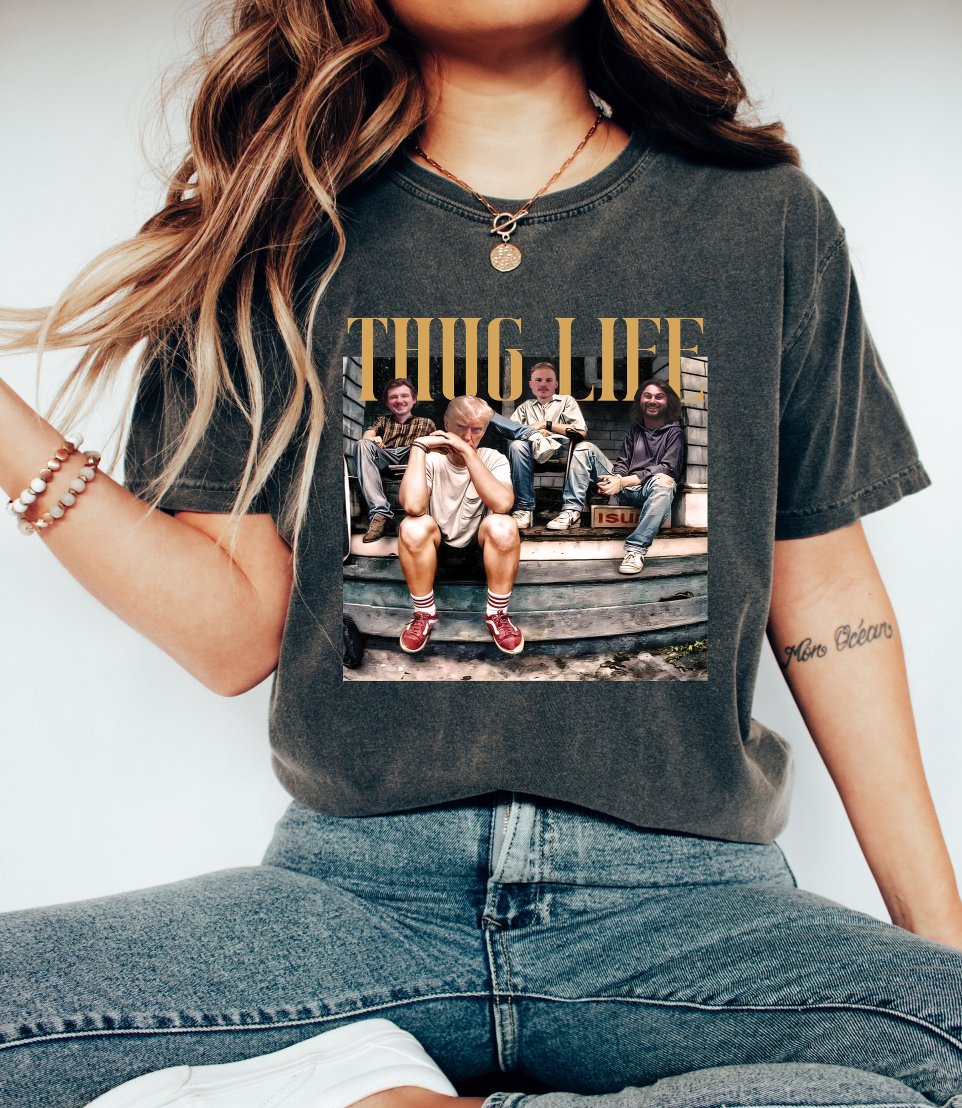 Unleash your inner thug life with the Comfort Colors Funny Thug Life Tee. Featuring your favorite artists - Trump, Koe Wetzel, Morgan Wallen, and Zach Bryan, this unisex tee is direct to garment printed for maximum comfort and style. Take your style game to the next level with this must-have tee.
