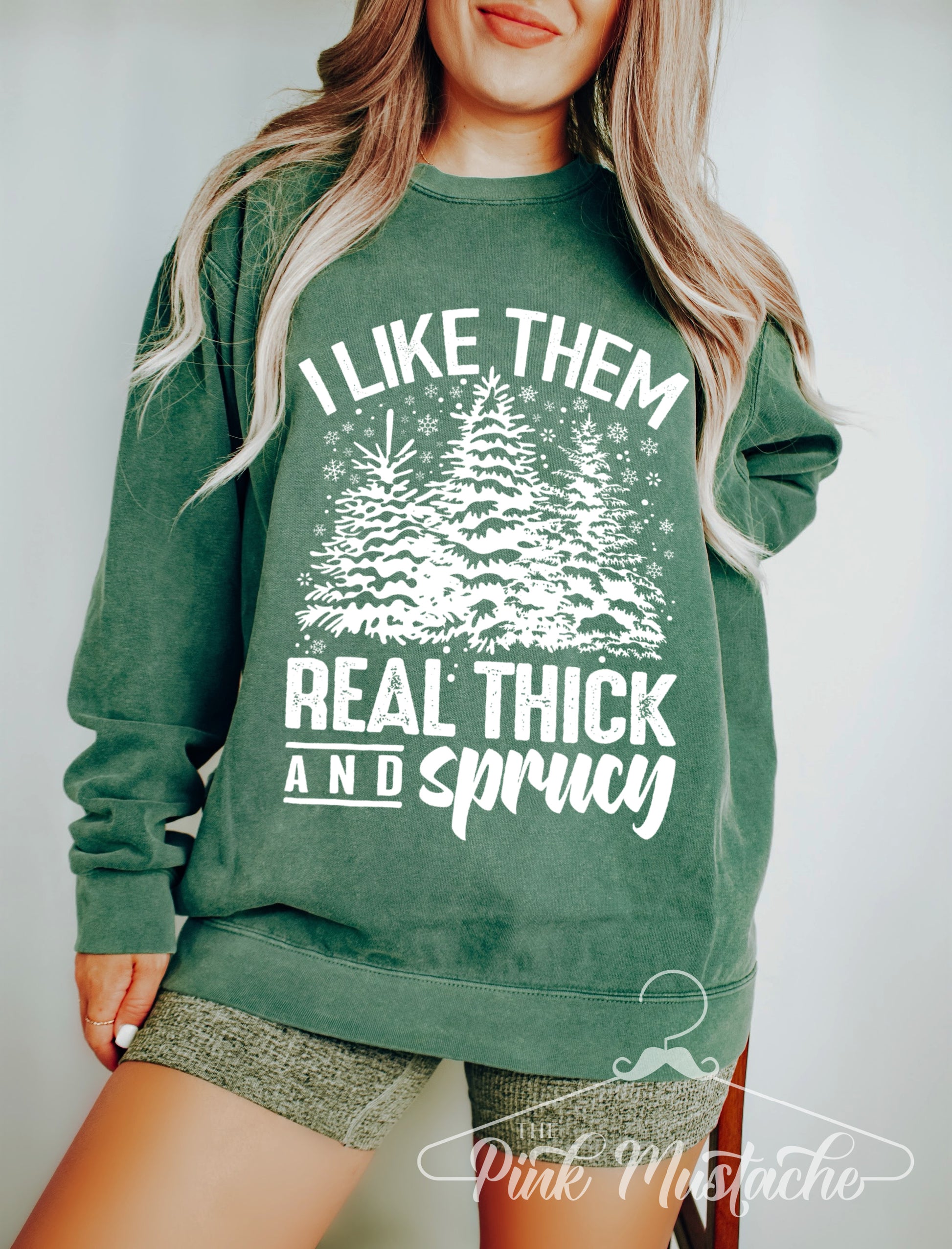Comfort Colors, Gildan, or Bella Canvas - I Like Them Real Thick and Sprucy Funny Christmas