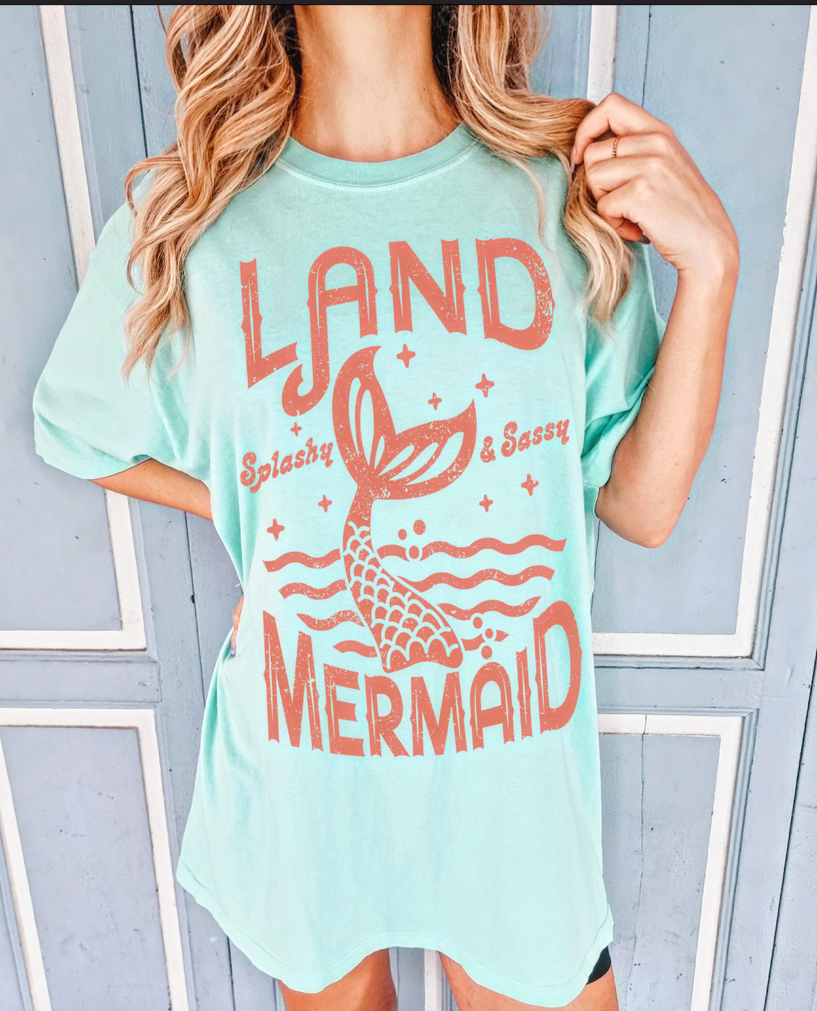 Comfort Colors Land Mermaid Tee/ Summer Vibes Beach Cover Up Vacation Summer Tee