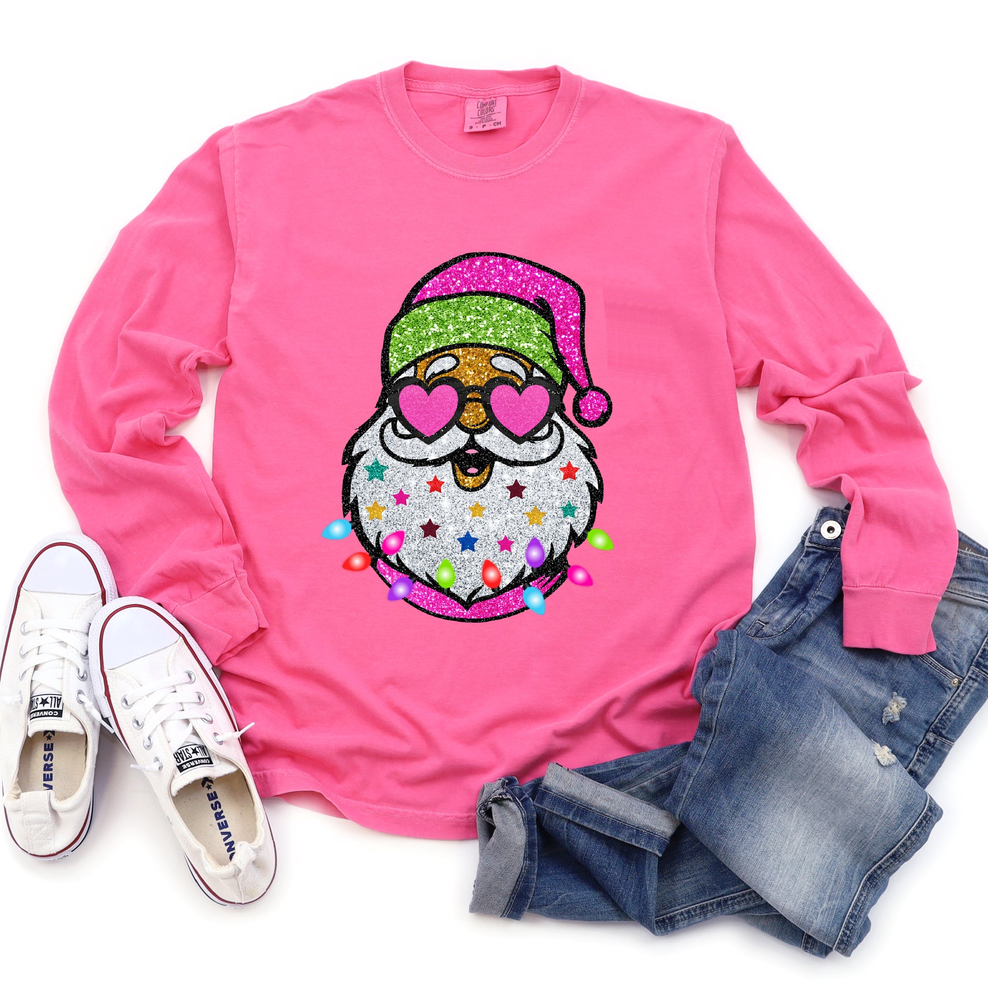 Comfort Colors Long Sleeved Pink Santa Tee - Youth and Adult Sizes - Christmas Shirt/ DTF Print