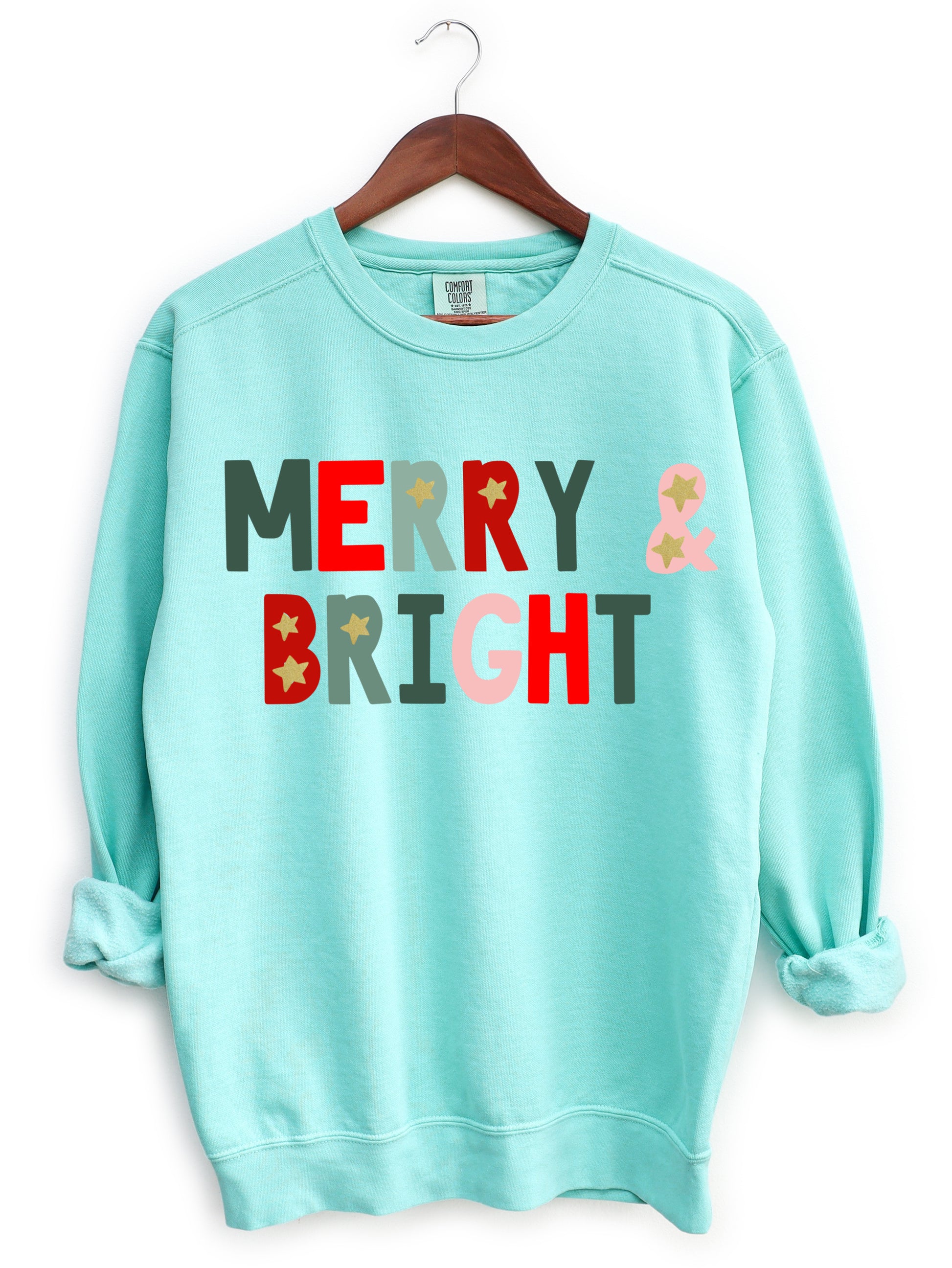 Comfort Colors Merry and Bright Christmas Sweatshirt - Adult Sizes
