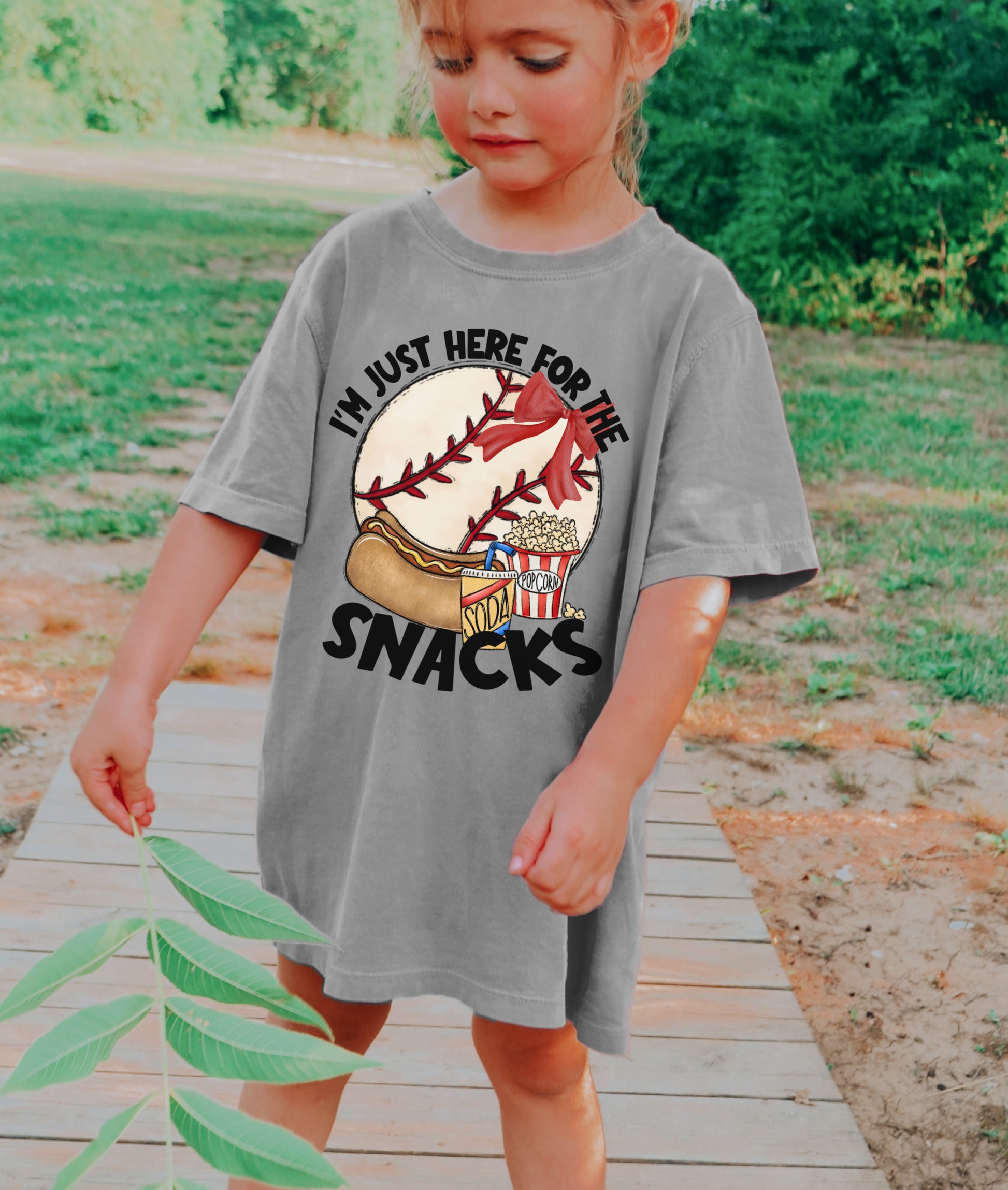 Comfort Colors or Bella Canvas I'm Just Here for the Snacks/Baseball Sister Shirt