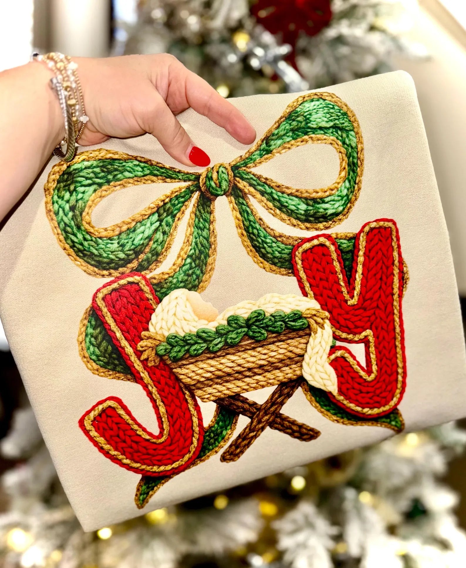 Comfort Colors or Bella Faux Yarn Joy Manger Christmas Tee / Youth And Adult Christmas T-Shirt