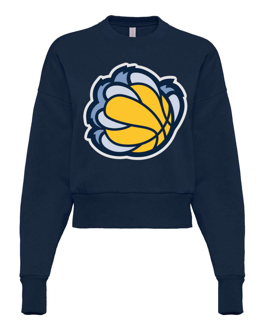 Navy Cropped Balloon Drop Sleeve Grizzlies Claw Sweatshirt/ Adult Memphis Basketball Sweatshirts/ Grizz Sweatshirt