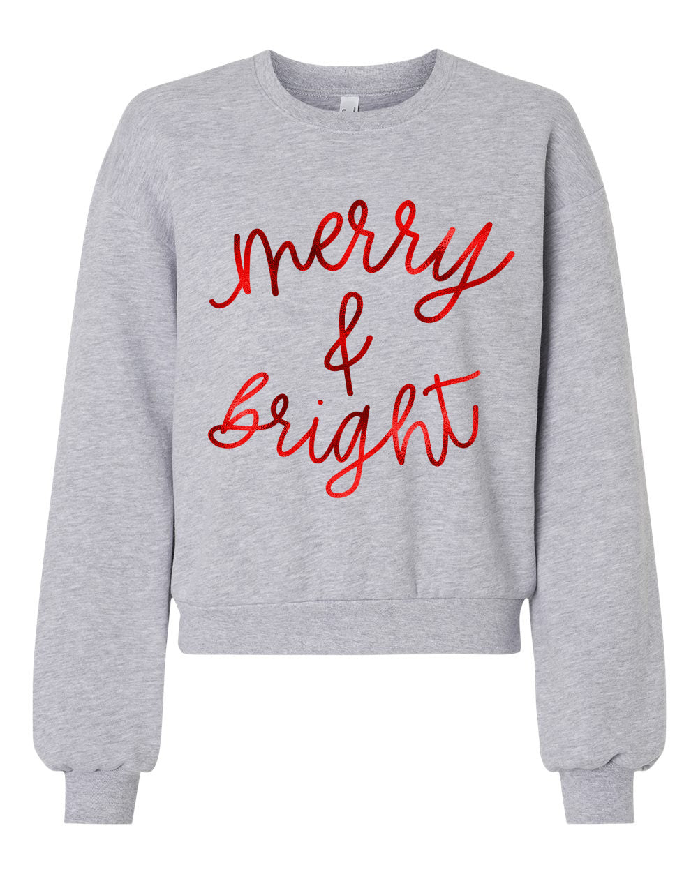 Cropped Boutique Balloon Sleeve Merry and Bright Sweater - Direct To Film Printed