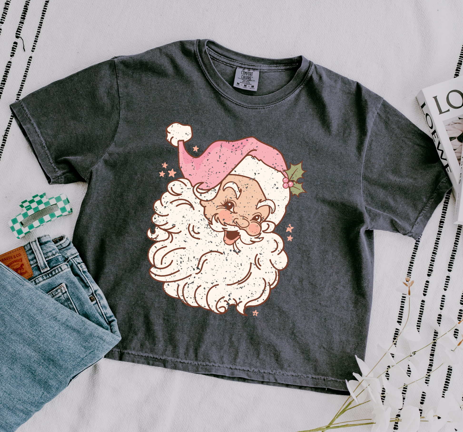 Cropped Comfort Colors Christmas Pink Santa Tee