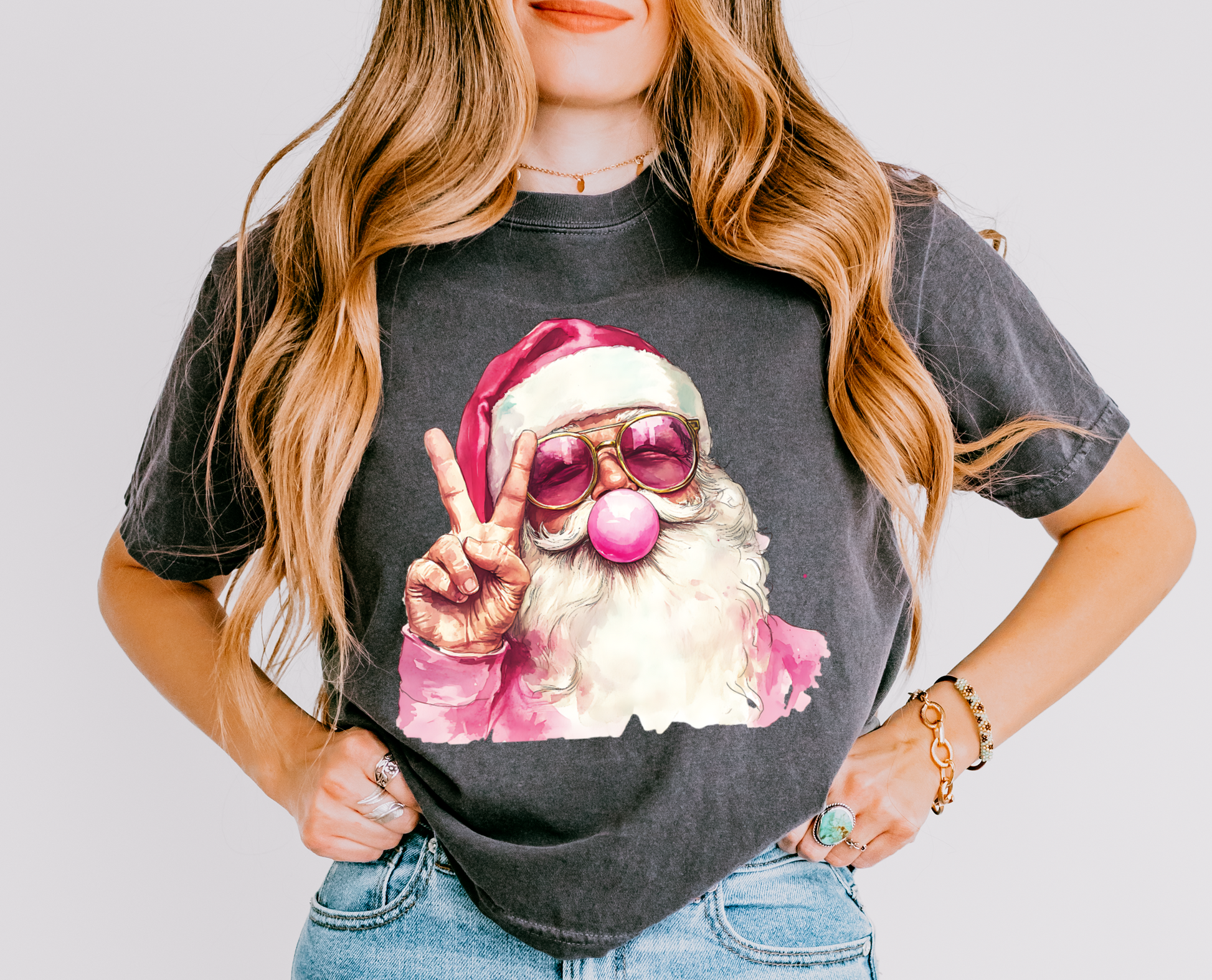Cropped Comfort Colors Christmas Santa Bubble Gum Tee/ Adult Sizes