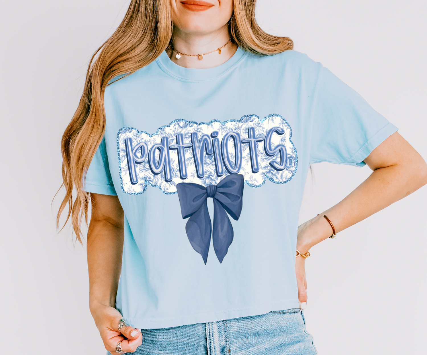 Cropped Comfort Colors Lewisburg Bow Shirt / Adult Sizes/ Lewisburg -Desoto County Schools /Lewisburg Patriots Mississippi School Shirt