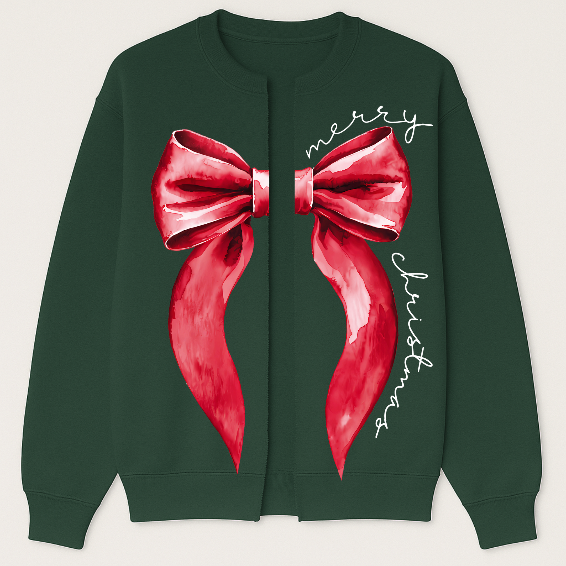 Custom Christmas Sweatshirt Cardigan - Oversized Print/ Merry Christmas Coquette Bow Design