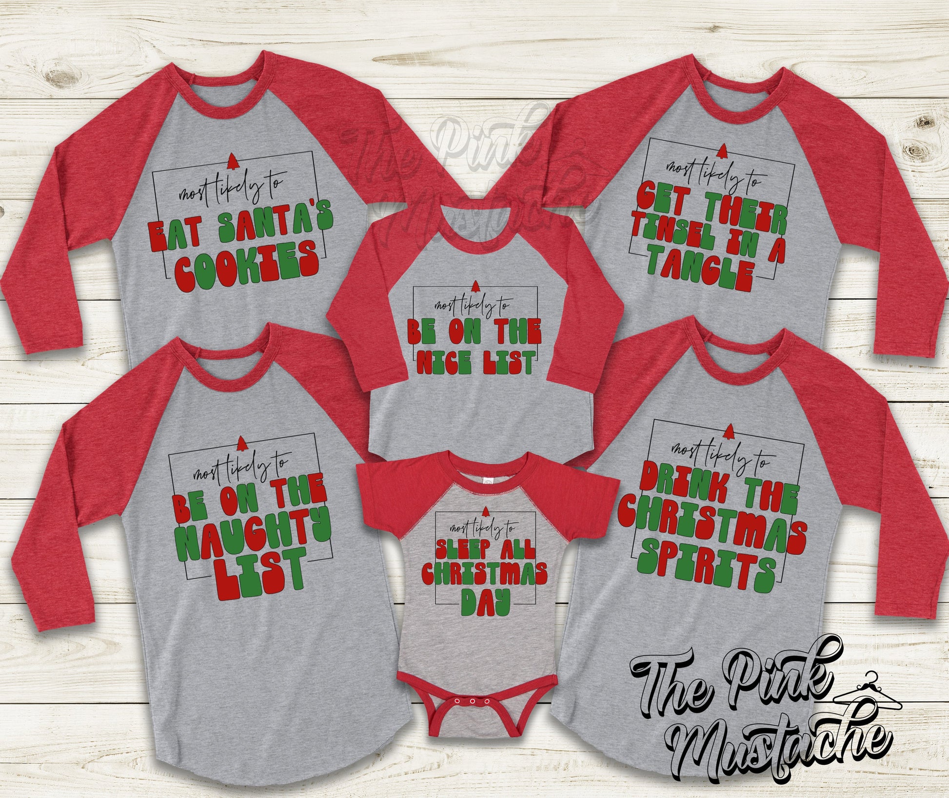 Family Most Likely To - Christmas Raglan Shirts/ Infant, Toddler, Youth, and Adult Sizes Available