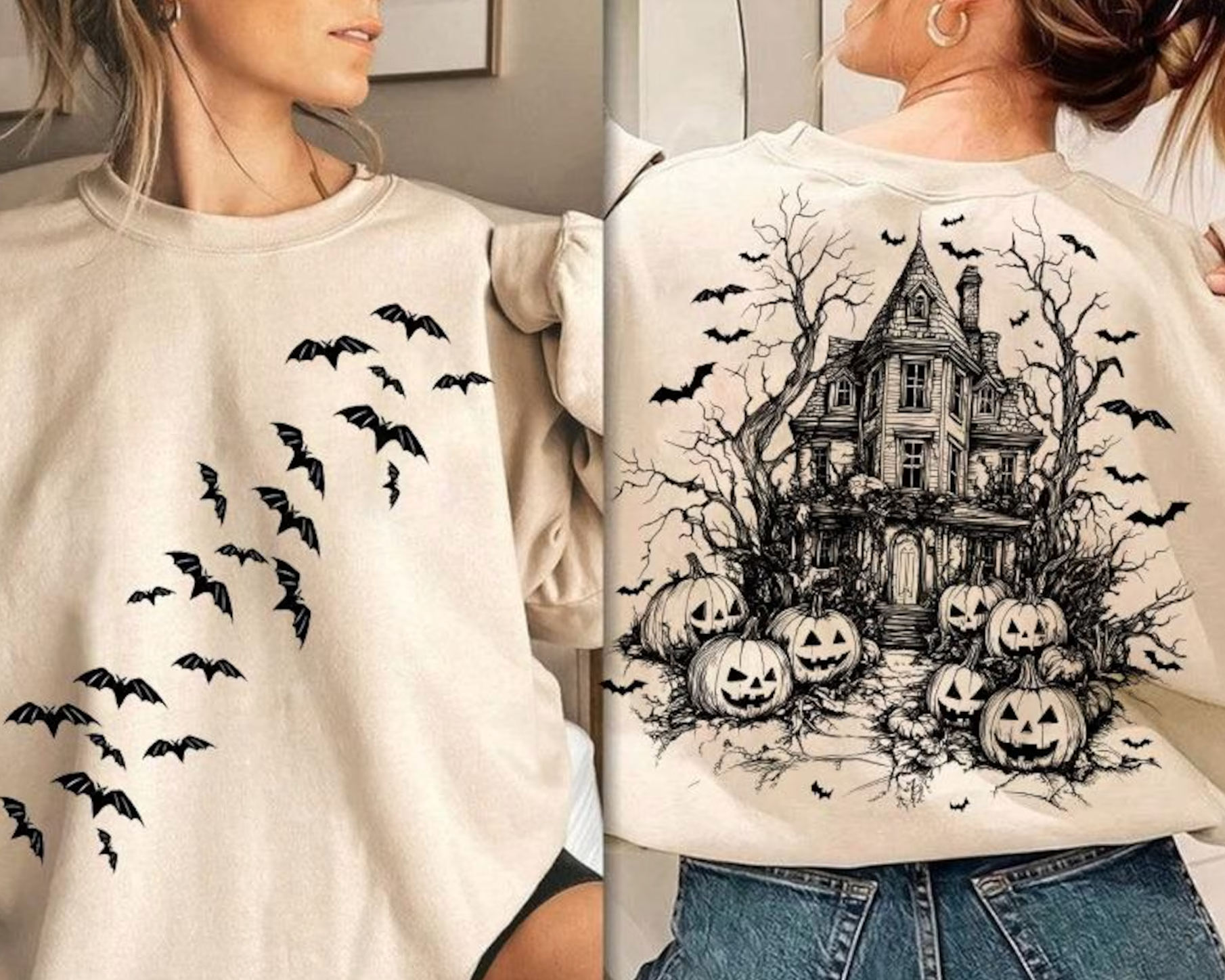 Front and Back Halloween Sweatshirt/Gildan or Bella Canvas