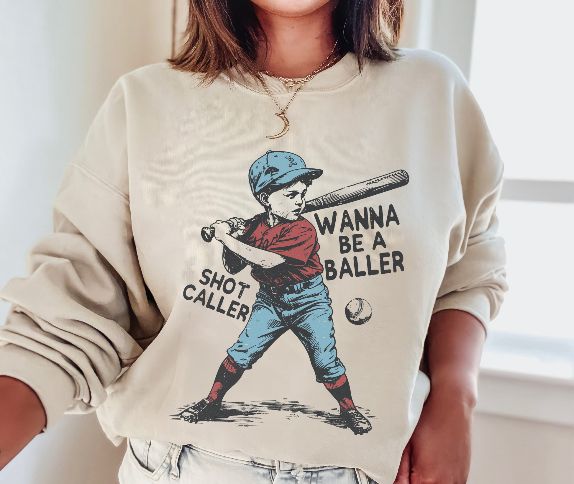 Gildan or Bella Canvas Wanna Be A Baller Shot Caller Baseball Sweatshirt