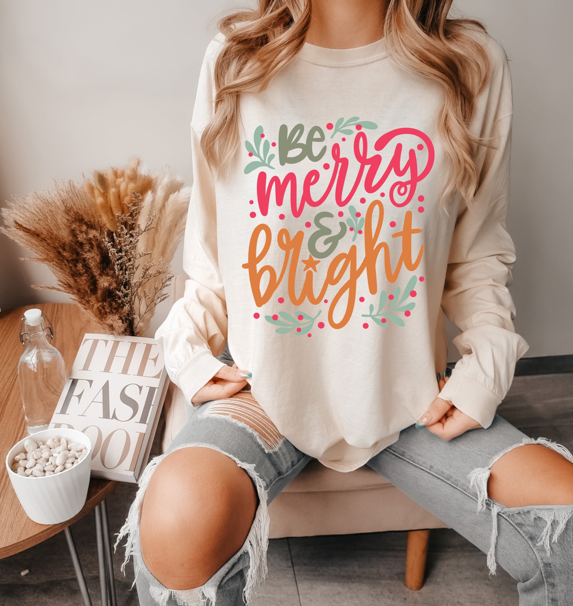 Ivory Long or Short Sleeve Be Merry and Bright Tee/ Super Cute Christmas Shirt/ Bella Canvas