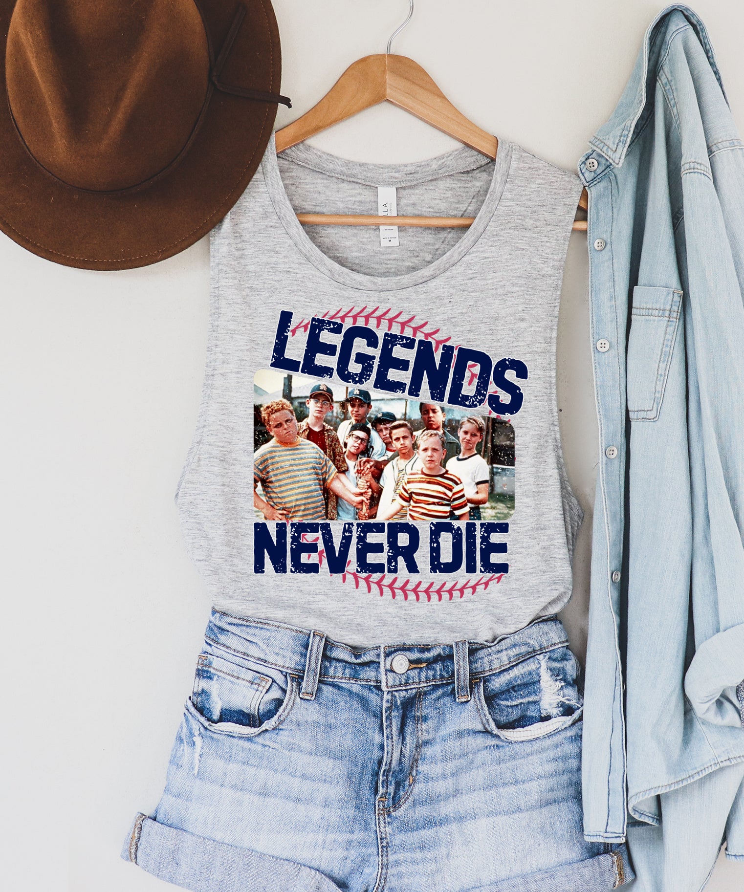 Introducing our Legends Never Die Tank Top, perfect for any baseball mom! Made with true-to-womens sizing and direct-to-garment printing, this Sandlot Tank showcases your love for the game in style. Get it now and show your support for your favorite team and players.