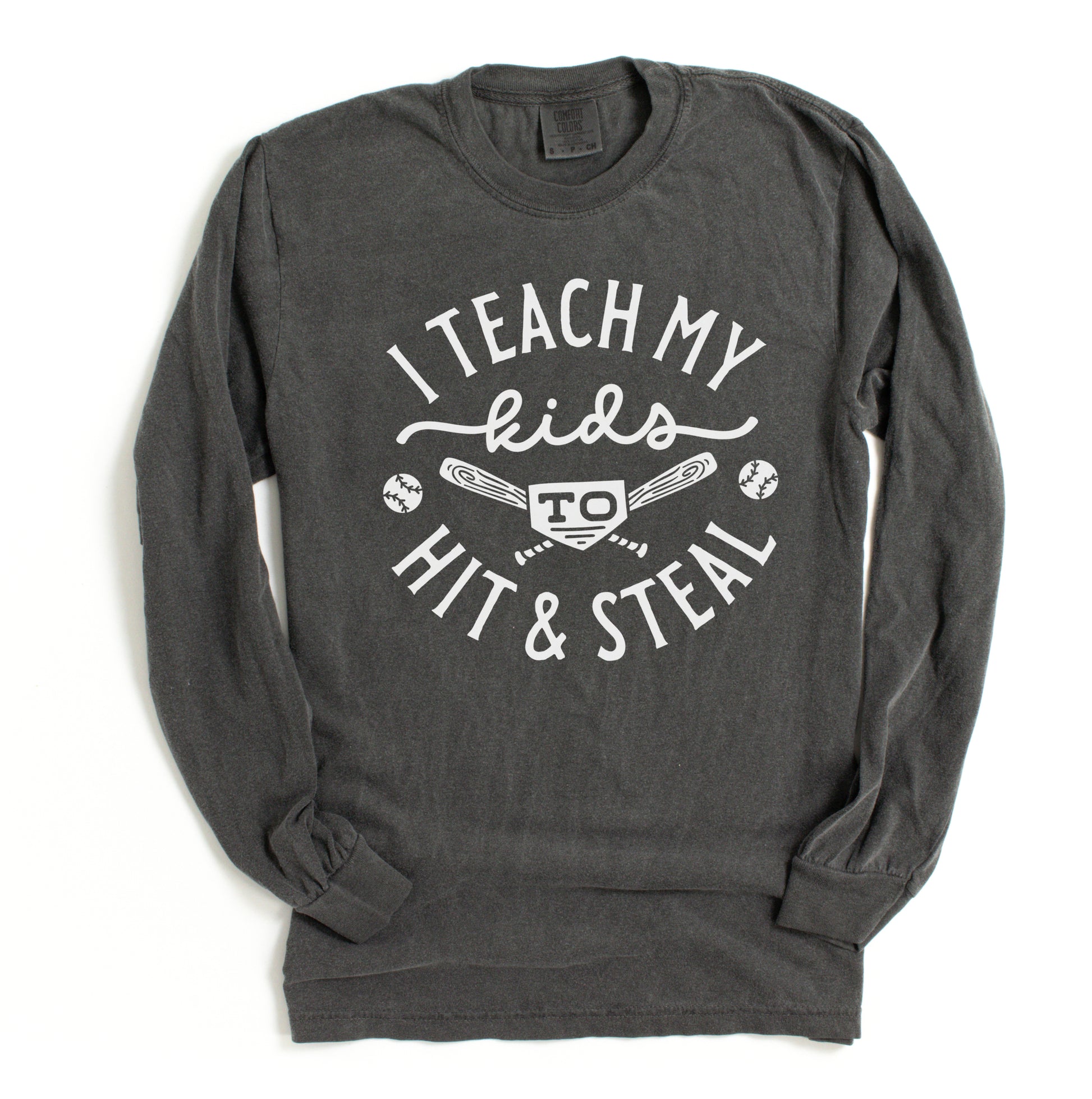Long Sleeve Comfort Colors I Teach My Kids To Hit And Steal Baseball Tee/ Quality Retro Tee