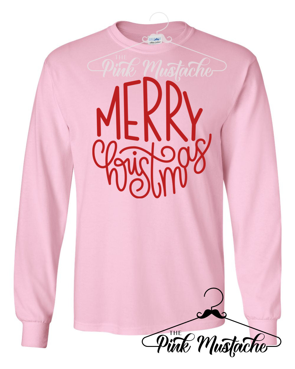 Long Sleeved Pink Merry Christmas Tees / Cute Mommy and Me - Family Christmas Tees