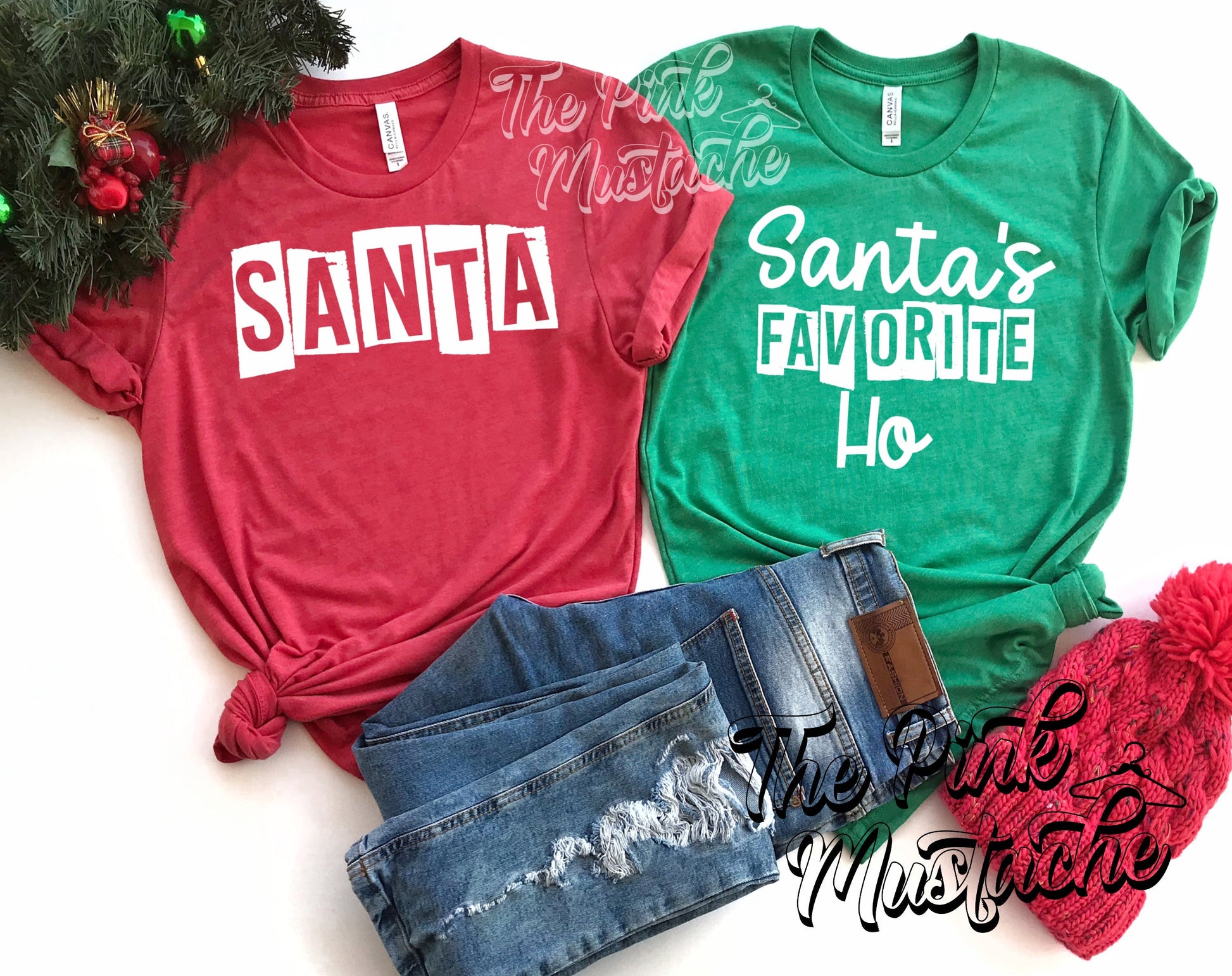Matching Couples Christmas Funny Shirts /Santa Shirt / Santa's Favorite Ho - Funny Christmas Shirts