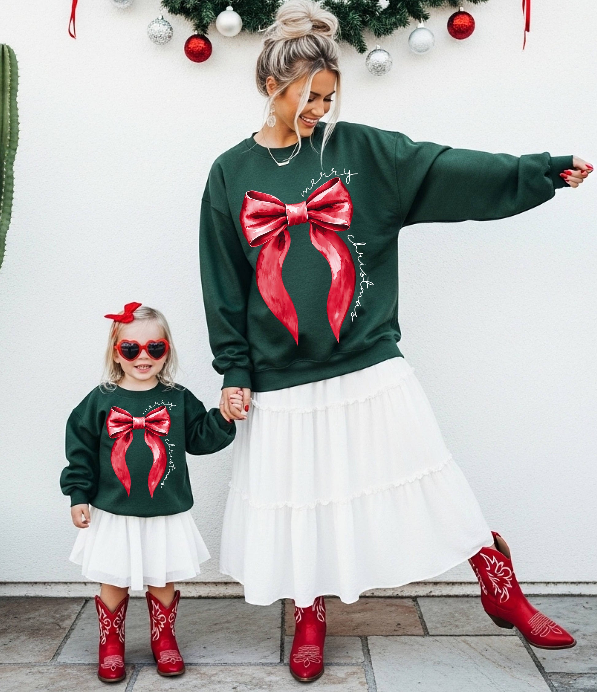 Mommy and Me Gildan or Bella Christmas Bow Sweatshirt/ Holiday Sweatshirts/ Multiple Colors