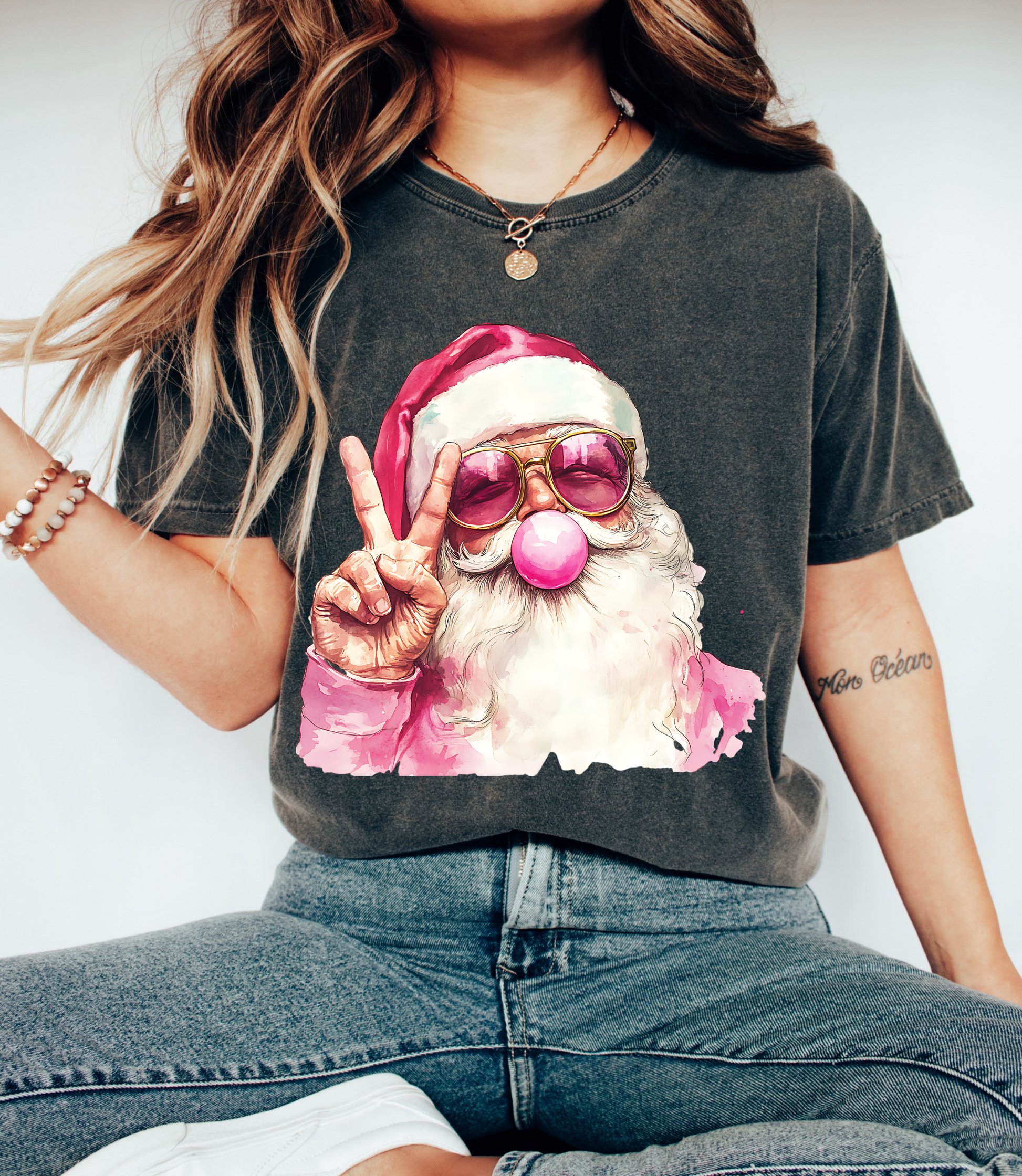Pepper Bella or Comfort Colors Merry Christmas Santa Bubble Gum Tee/ Short Sleeve Options