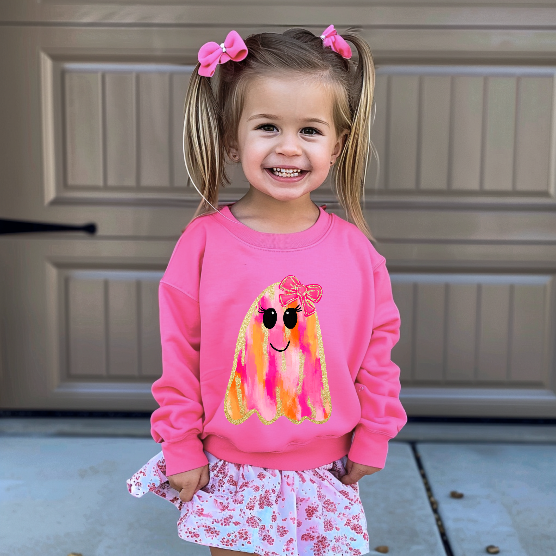Pink Halloween Cute Ghost Faux Glitter Sweatshirt/ Halloween Sweatshirt/ Youth and Adult Sizes