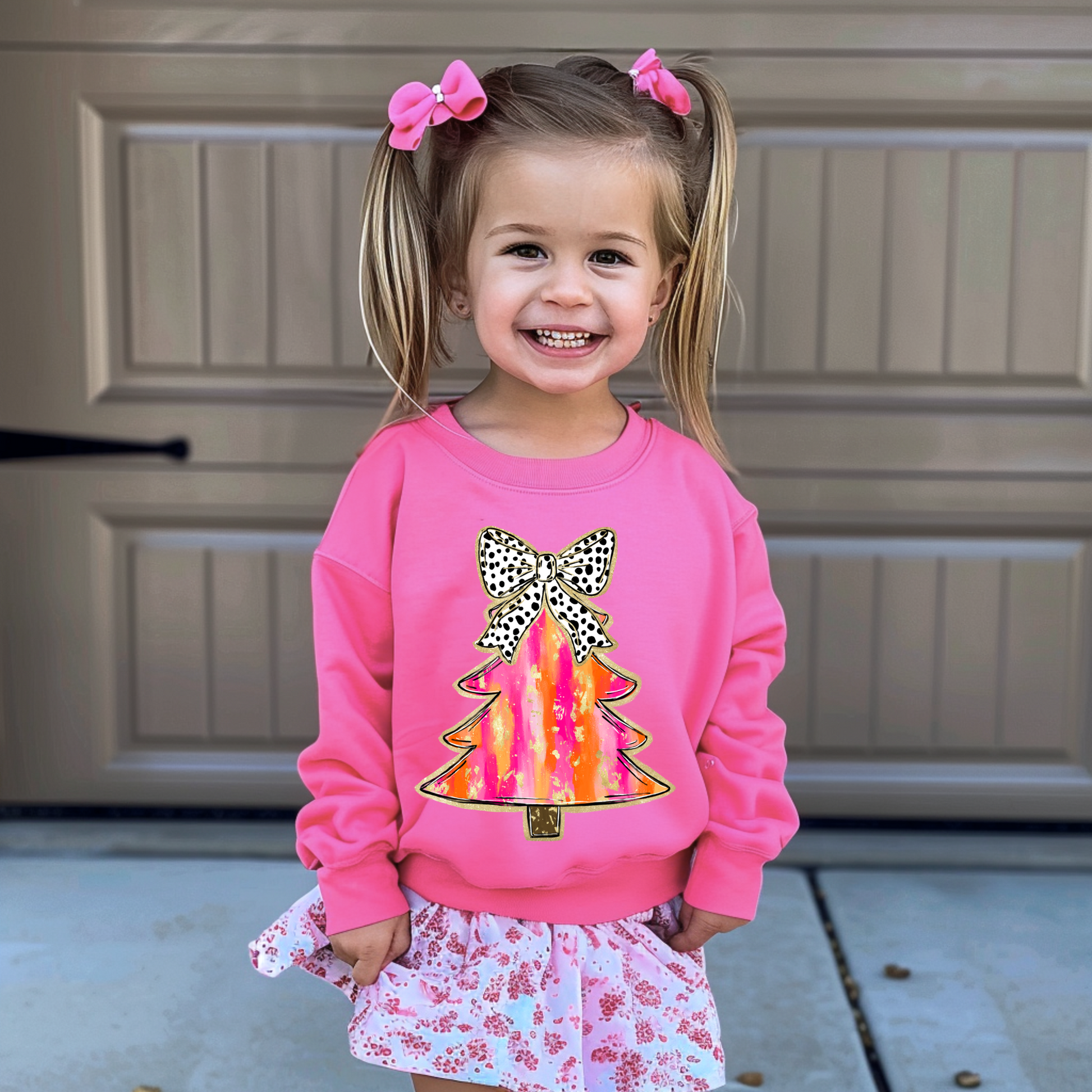 Pink Halloween Cute Pink Tree Faux Glitter Sweatshirt/ Christmas Sweatshirt/ Youth and Adult Sizes