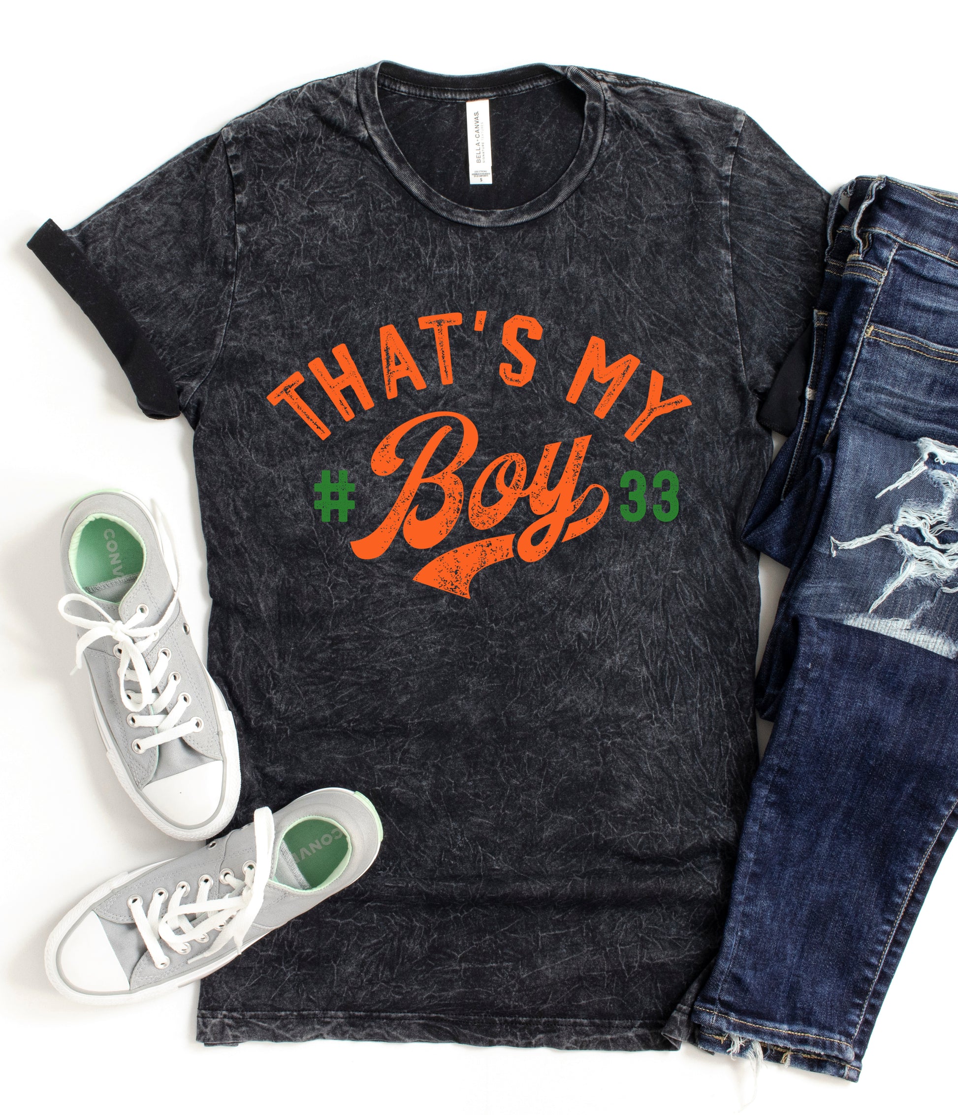 Orange and Forest That's My Boy With Personalized Number Acid Washed Tee / Any Sport / Baseball, Basketball, Football, Soccer Mama Shirt