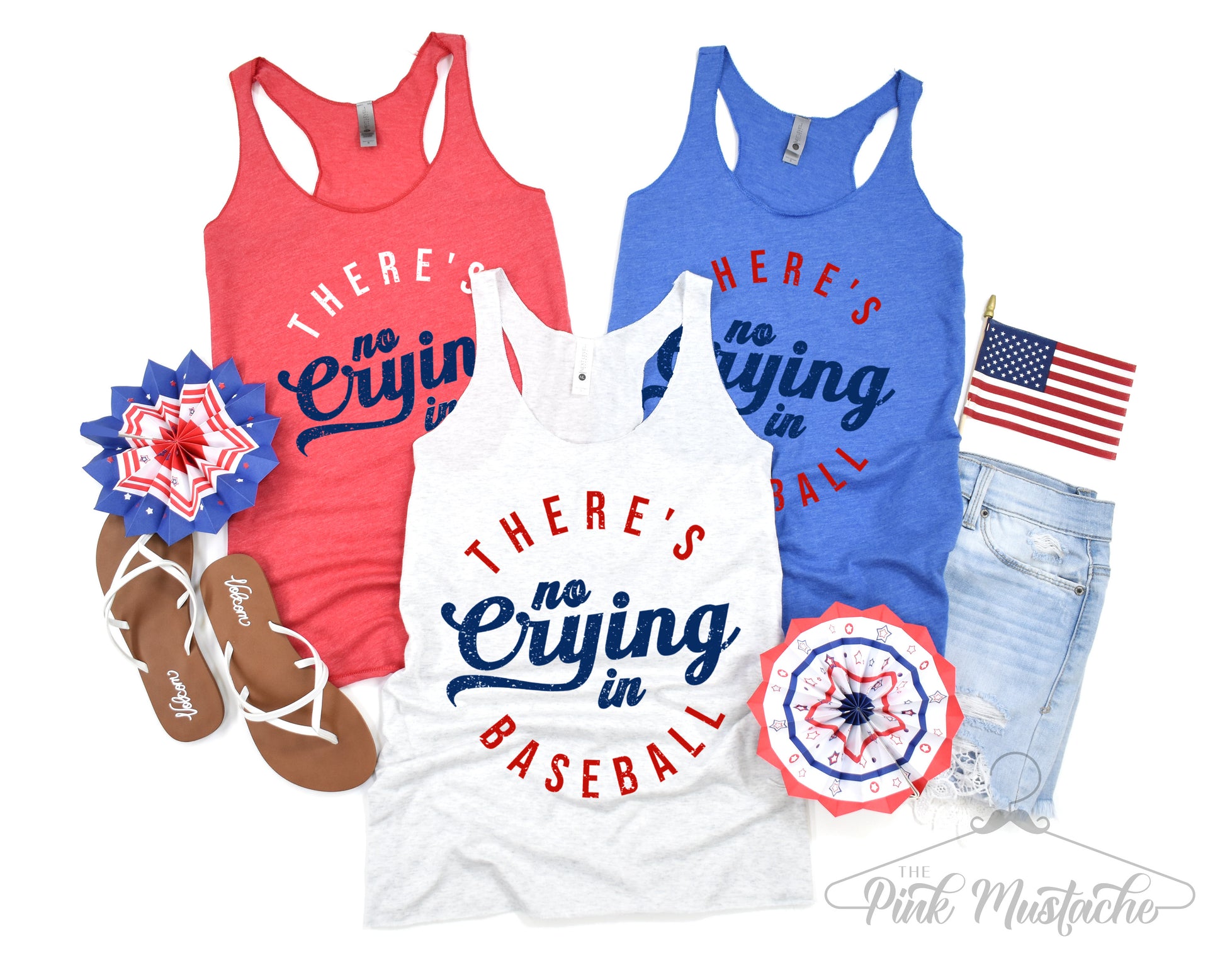 Show your support for America's favorite pastime with this No Crying In Baseball Tank. With direct to garment printing technology, this breathable retro-inspired design is crafted with quality unisex fabric for superior comfort and durability.