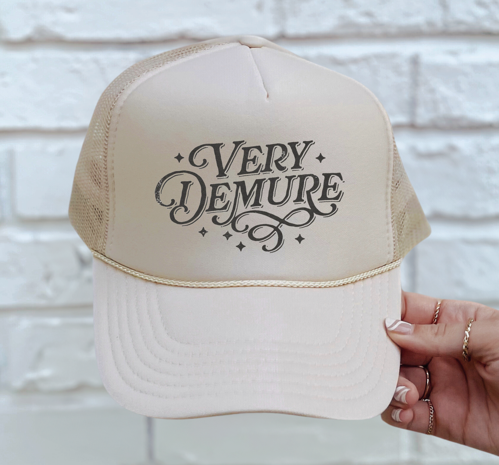 This Very Demure Hat is the perfect accessory to complement a variety of looks. Crafted from premium quality materials and featuring a bold slogan, this hat is sure to add a touch of style to any wardrobe.
